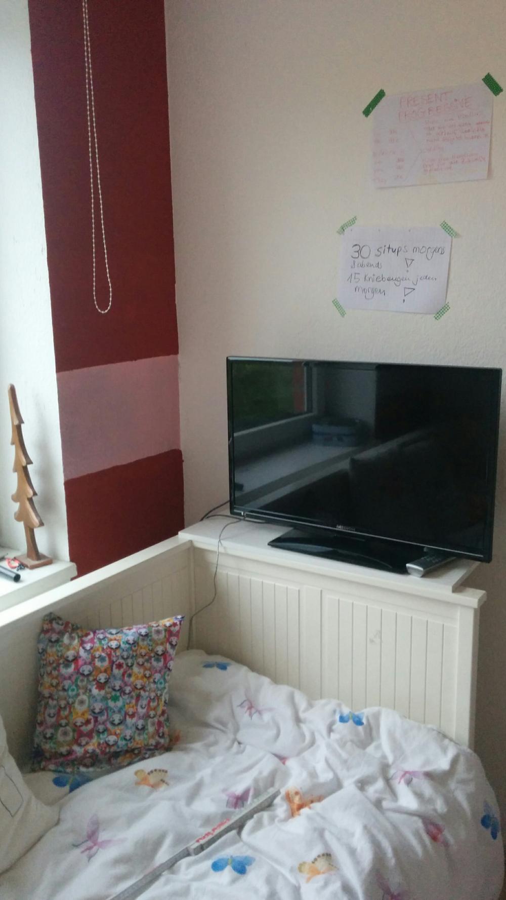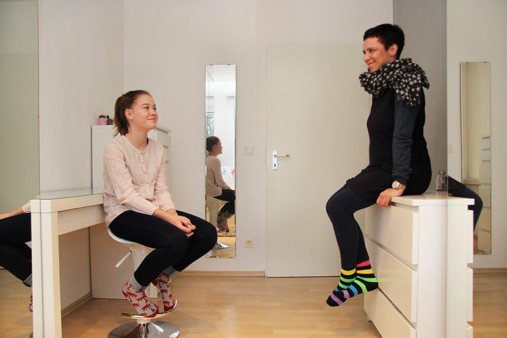 Emelie: "Ich habe viel zu viele Sachen! Ich wünsche mir ein modernes, helles Zimmer, ein großes Bett zum Chillen und viel Stauraum und viele Spiegel!"