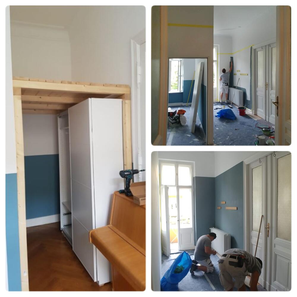 aus 1 macht 2. Das bestehende Arbeitszimmer wird mittig mit einer Trockenbauwand geteilt, so bekommt Mieke ihr Wunschzimmer mit einer Hochbettetage und die Mutter kann ihr Arbeitszimmer auch behalten. Ein Win Win für die ganze Familie.